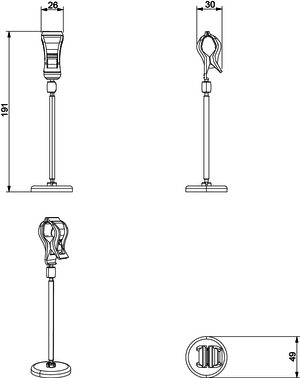 Article no.: C4842 Small round base with large gripper and 10cm stem Packed in bag of 10 pcs. Box quantity: 500 pcs.